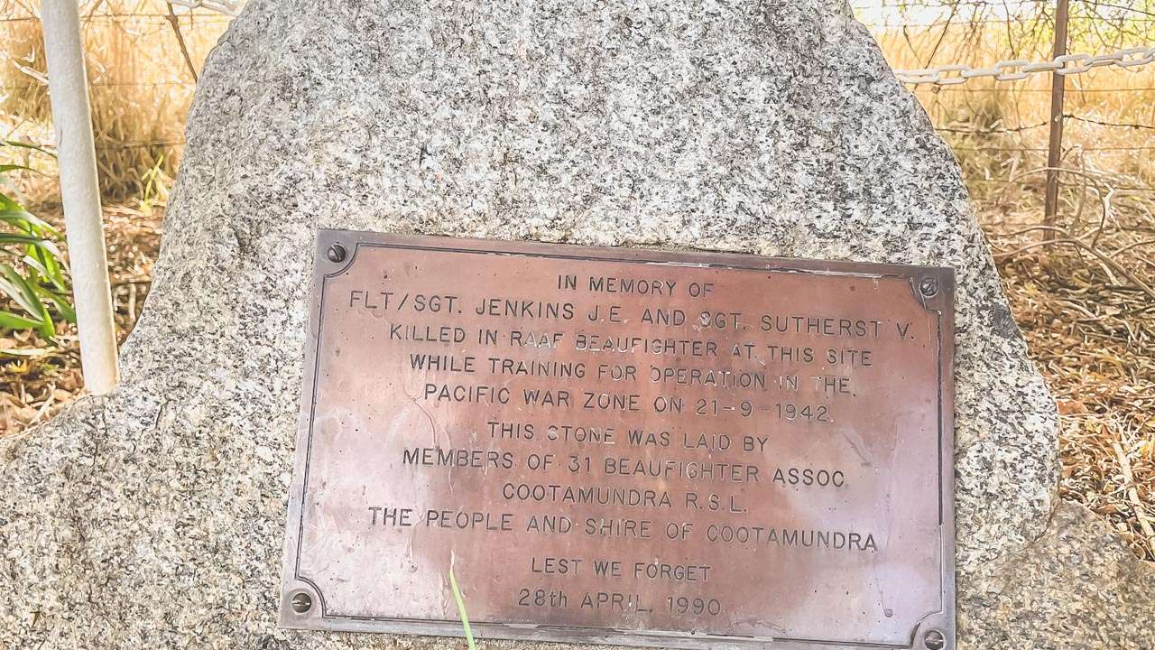 At the memorial for a Bristol Beaufighter that crashed and killed the two occupants during 1942. It was flying out of the RAAF training base at Cootamundra. - Hello There Coota 2! – GCAFK55
