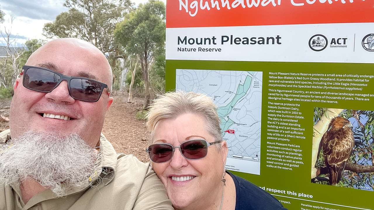 Some of the locations we found geocaches include around Canberra Airport and Duntroon Military College. We drove through the Duntroon Military College on our way up the hill to a geocache located at Mount Pleasant Lookout.