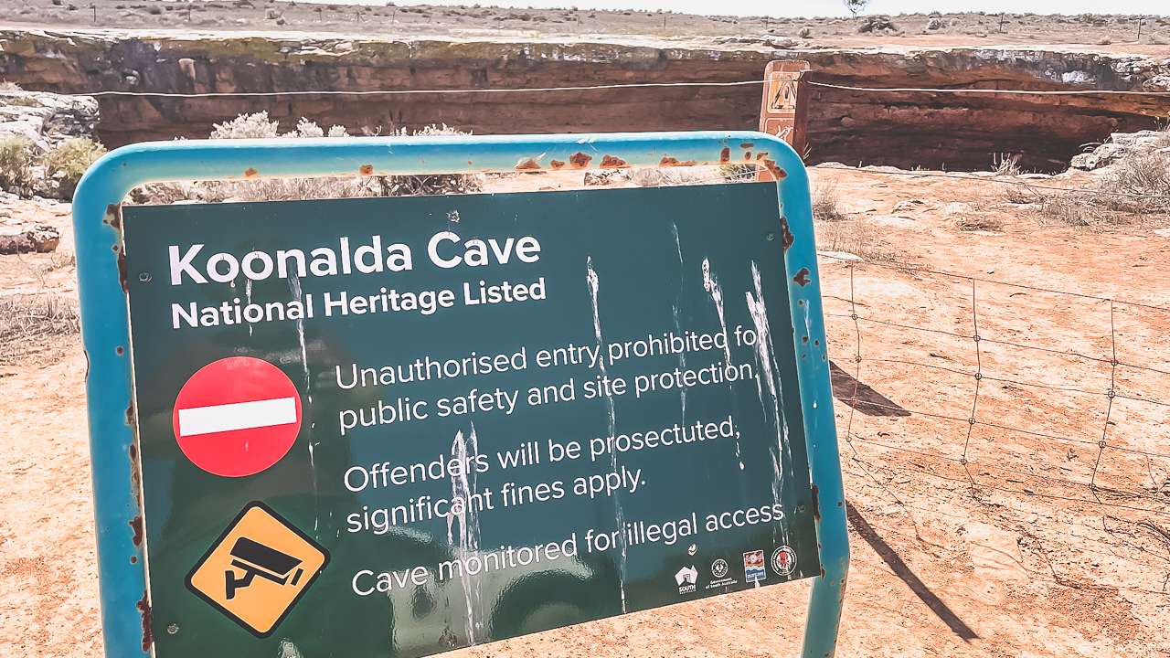 Leaving our campsite near Eucla we hit the Eyre Highway after breakfast at the Border Village Roadhouse. The road was long and straight as the Nullarbor tends to be with the occasional bit of roadkill to break the monotony. About 40km past Border Village, we reached the turnoff to Koonalda Homestead – marked by a small, easy to miss sign. From there it’s a 14km dirt road to the homestead itself.