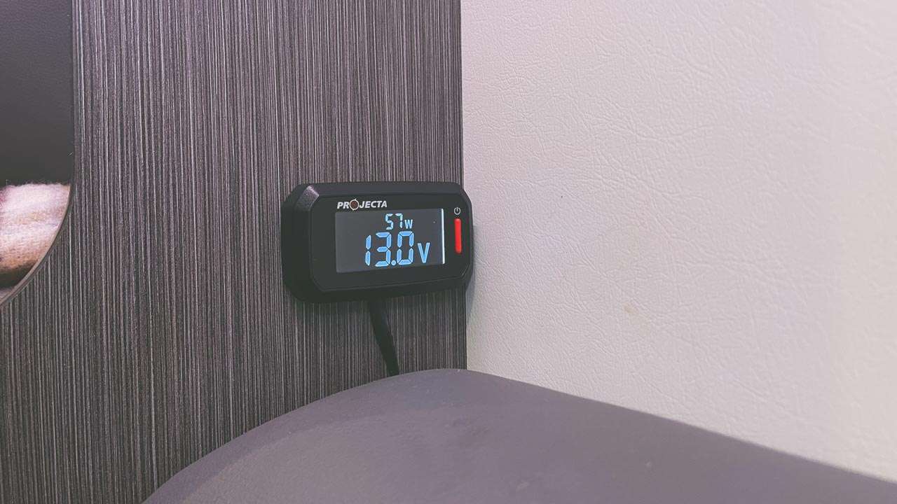 We’ve installed the Projecta ProWave 500w Pure Sine Wave inverter. It’s only small however it covers everything we need to run. We’ve tested it with both laptops, two extra monitors and the printer all plugged in at the same time and it was only using a combined total of 265 watts. Comfortably under the inverters maximum output of 500 watts.