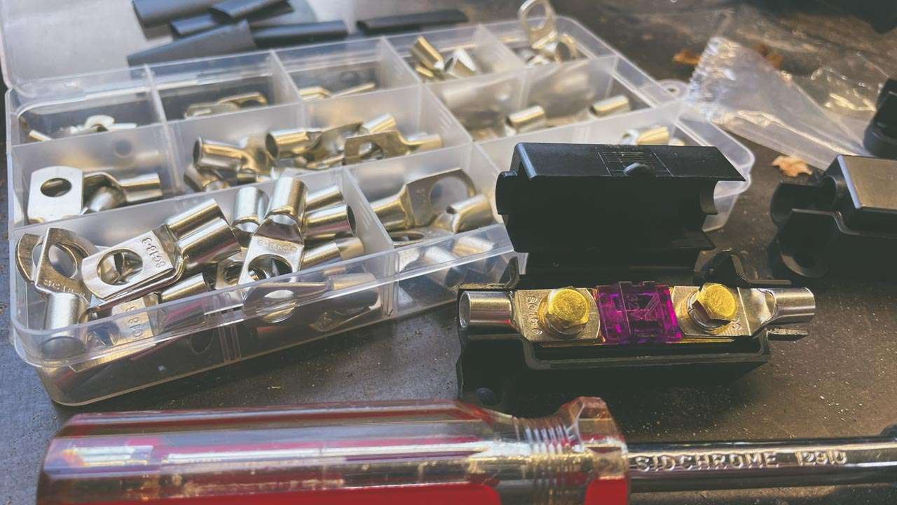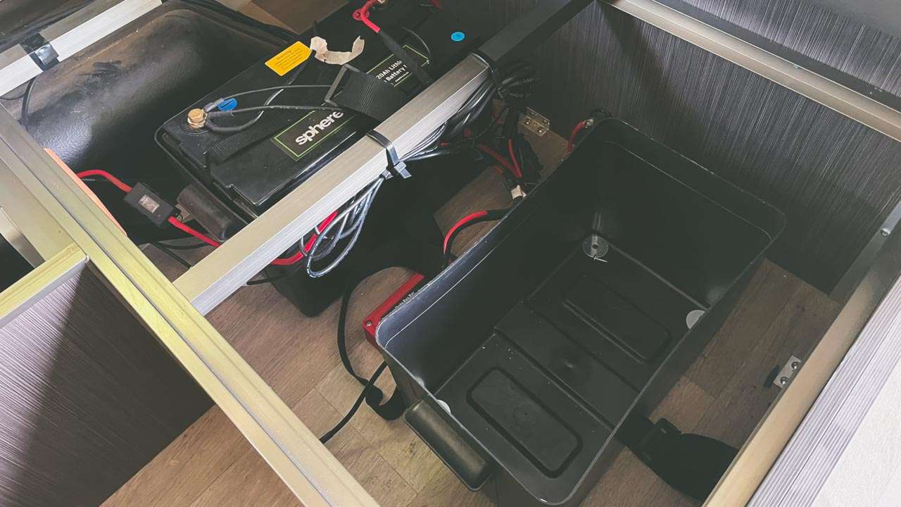 Installation was very easy. All up it took me about two hours from beginning to completion. I had to move one of the housings for one of our two lithium batteries underneath our Jayco All-Terrain caravans seats so that the inverter would fit in alongside. I just had to turn the battery box 90 degrees to make room. I made up a few new leads using 6B&S cable. That’s plenty thick enough for the current it needs to carry. Everything installed has had an appropriately sized midi fuse installed.