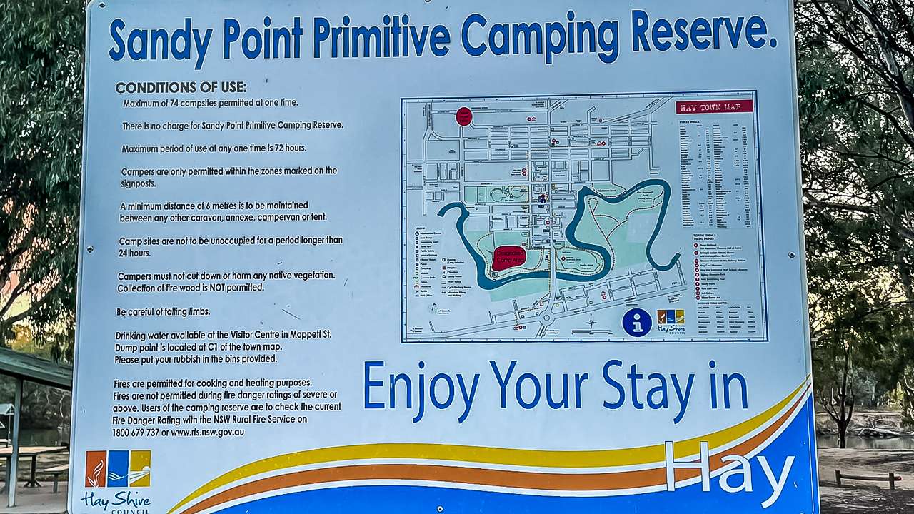Sandy Point Primitive Camping Reserve Rules Sign
