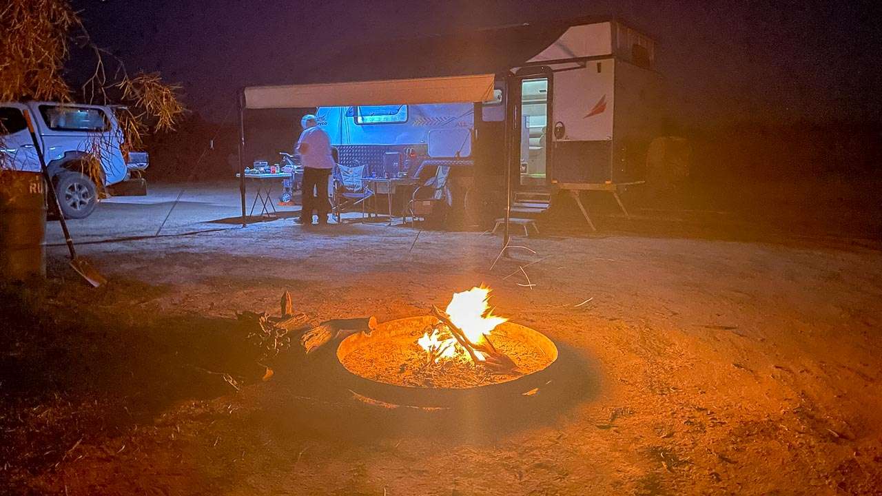 Unfortunately you can’t. There is no camping allowed at Margaret Railway Siding on the Old Ghan Railway alongside the Oodnadatta track.