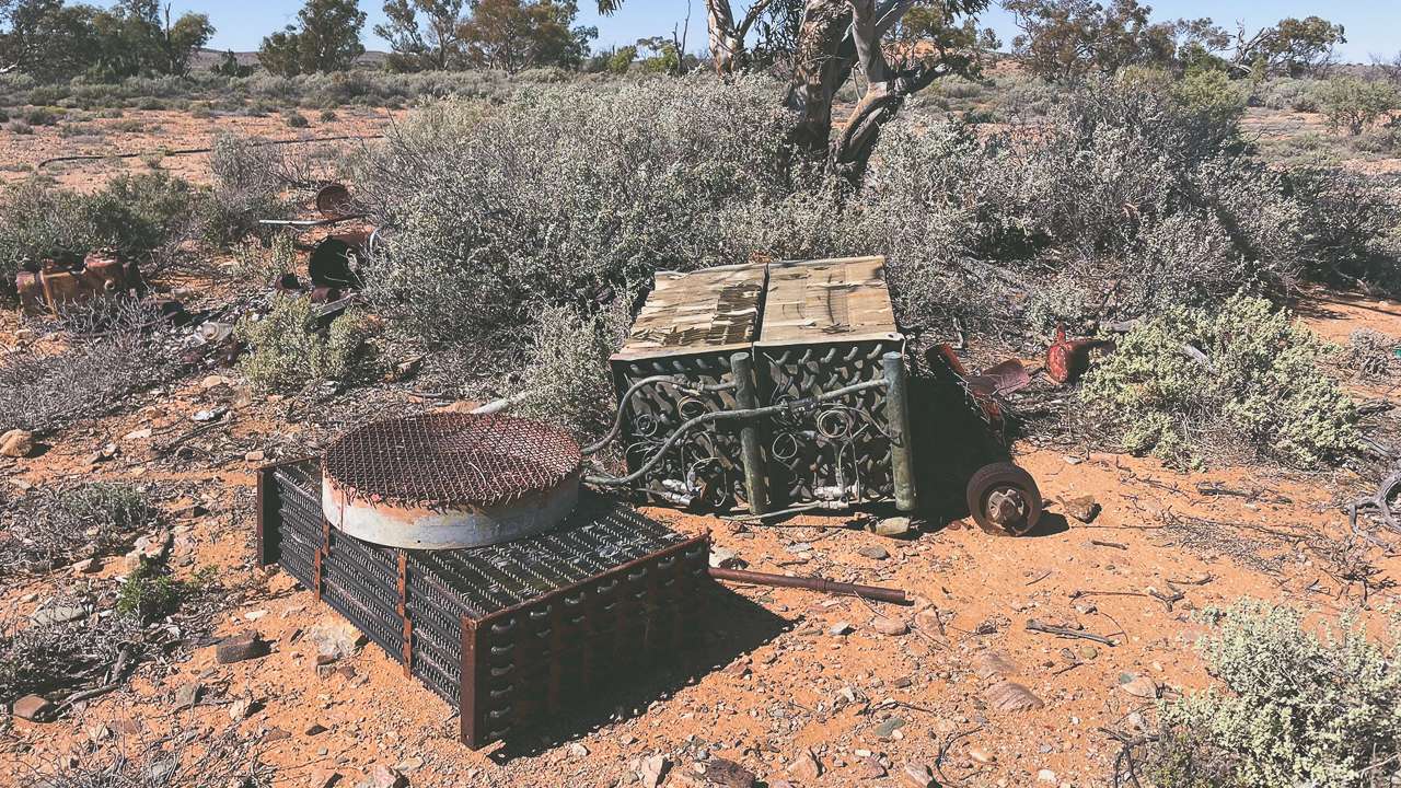 We set up camp at Curdimurka Siding and then spent a couple of hours exploring what is left of Curdimurka Siding and there is quite a lot left to see. It’s still all in fairly decent condition. We walked out along the tracks to the water tower and bore and it’s in a sad state of decline. It was interesting to have a look at the Curdimurka Siding water softener as well. There’s another water softener at Beresford Siding where we camped on a previous trip along the Oodnadatta Track. These softeners were used to remove minerals from the bore water that created scaling in the boilers of the steam engines that travelled the Ghan.