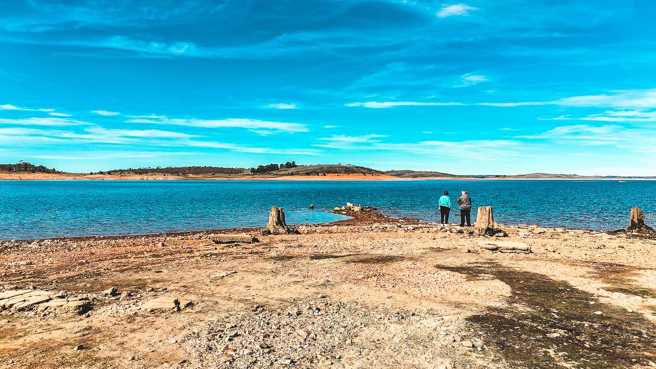 Today, parts of the “drowned town” resurface during droughts revealing remnants of its past. Stone foundations, fence lines and even old machinery. As we stood by the lake’s edge, Mum recalled stories of families who relocated to “New Adaminaby” in 1956–58, their homes either moved or left to vanish beneath the water. The weight of history is palpable, especially when contrasted with the serene beauty of the lake.