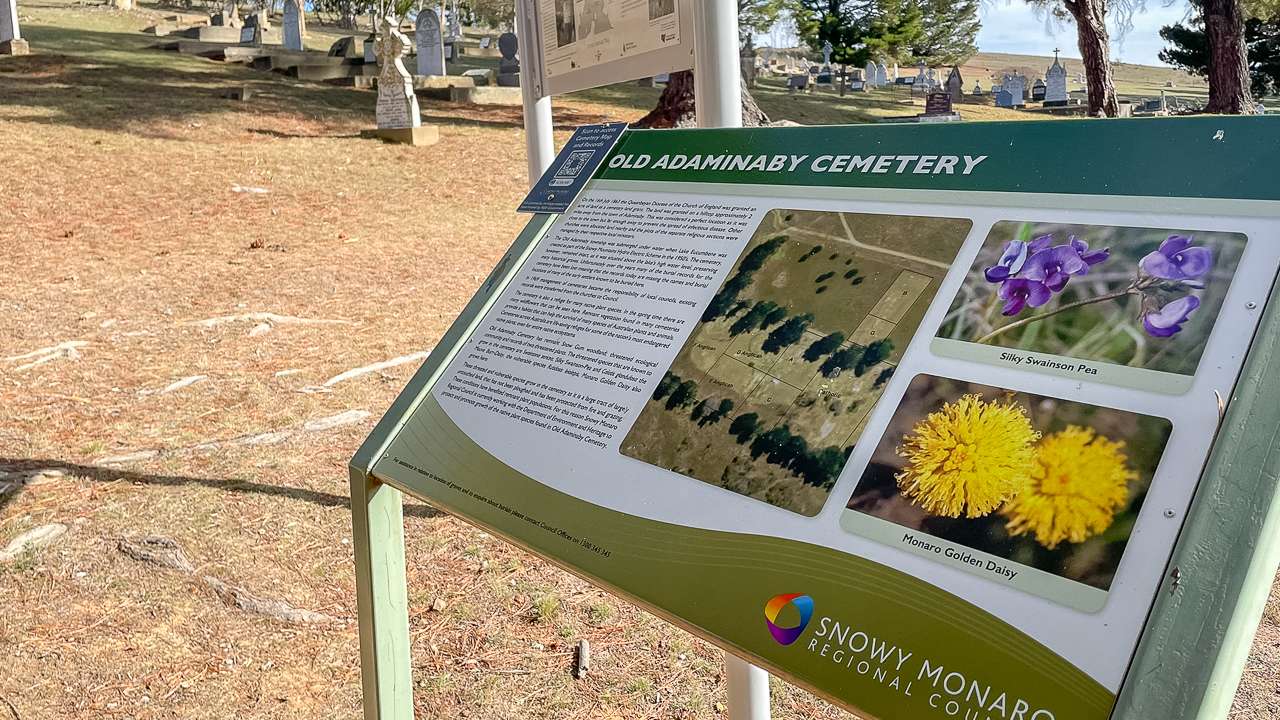 Explore Old Adaminaby NSW: Discover its drowned history, explore the cemetery, spot wild brumbies, find geocaches and camp by Lake Eucumbene. Last Sunday Amanda and I packed the car with Mum for a day trip to Old Adaminaby, a historic town in the Snowy Mountains.